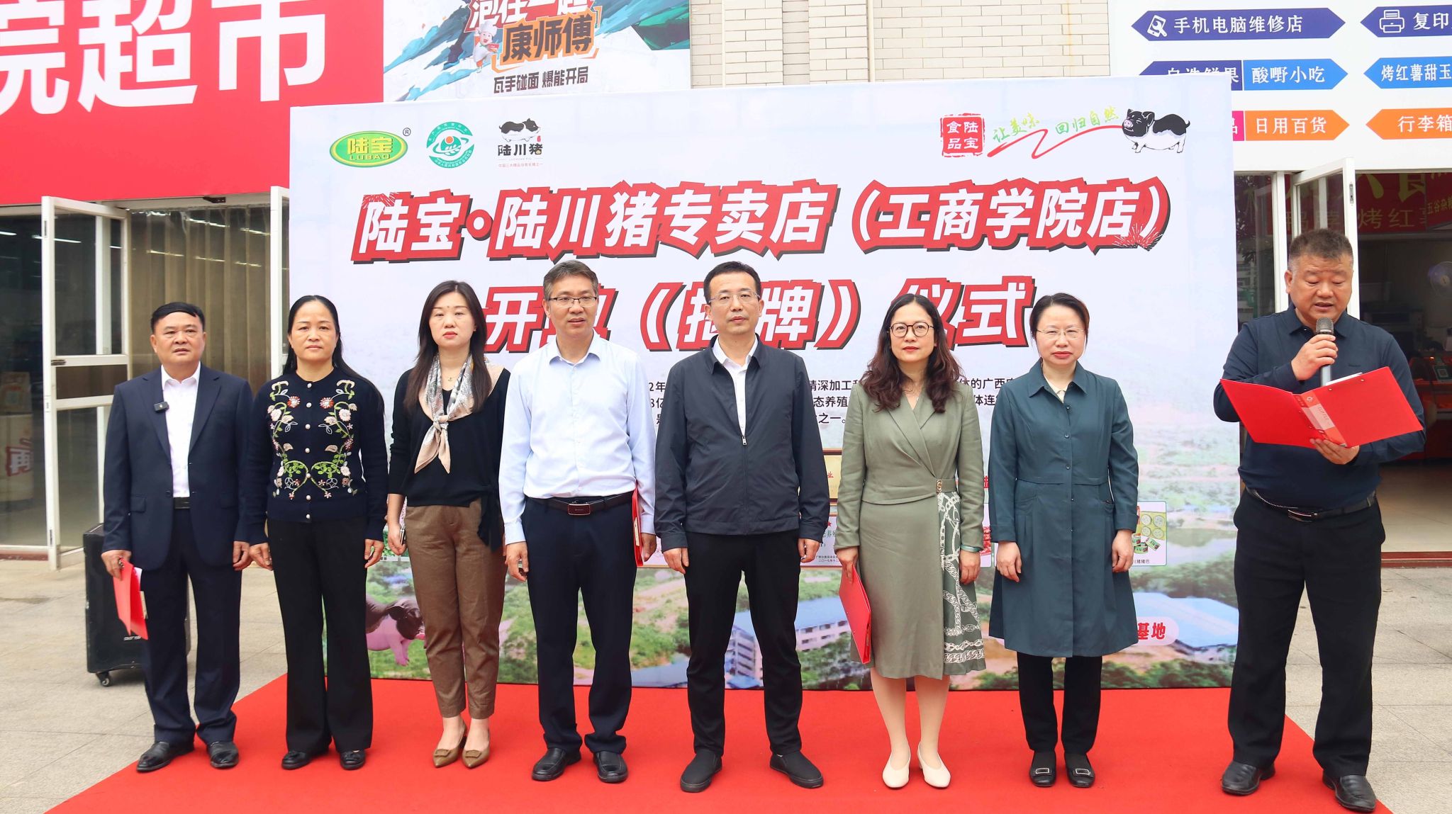 • 3月16日,陸寶?陸川豬專賣店揭牌儀式在我校舉行。學(xué)校黨委副書記、校長劉進(jìn),副校長鄭華,陸川縣委常委、副縣長林雯,陸川縣人大常委會副主任、縣總工會主席陳謹(jǐn),陸川縣農(nóng)業(yè)農(nóng)村局分管領(lǐng)導(dǎo)謝帆,廣西陸寶食品有限...