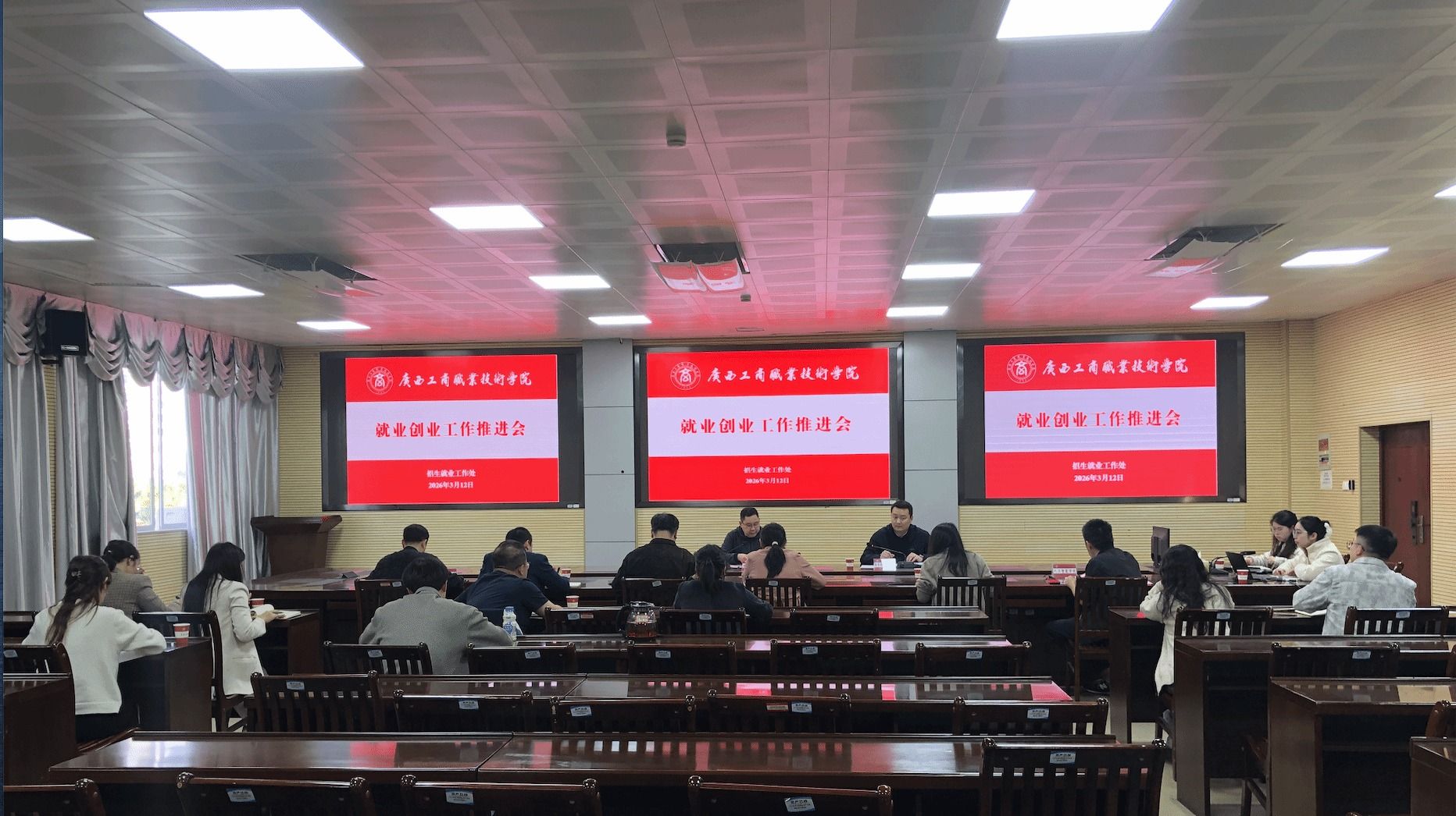 • 為扎實推進(jìn)2026年畢業(yè)生就業(yè)創(chuàng)業(yè)重點工作,全面落實訪企拓崗專項行動部署,切實提升畢業(yè)生就業(yè)質(zhì)量與就業(yè)服務(wù)水平,3月12日,學(xué)校在鵬飛校區(qū)召開2026年3月就業(yè)創(chuàng)業(yè)工作推進(jìn)會。學(xué)校副校長陳寧春,招生就業(yè)工作處...