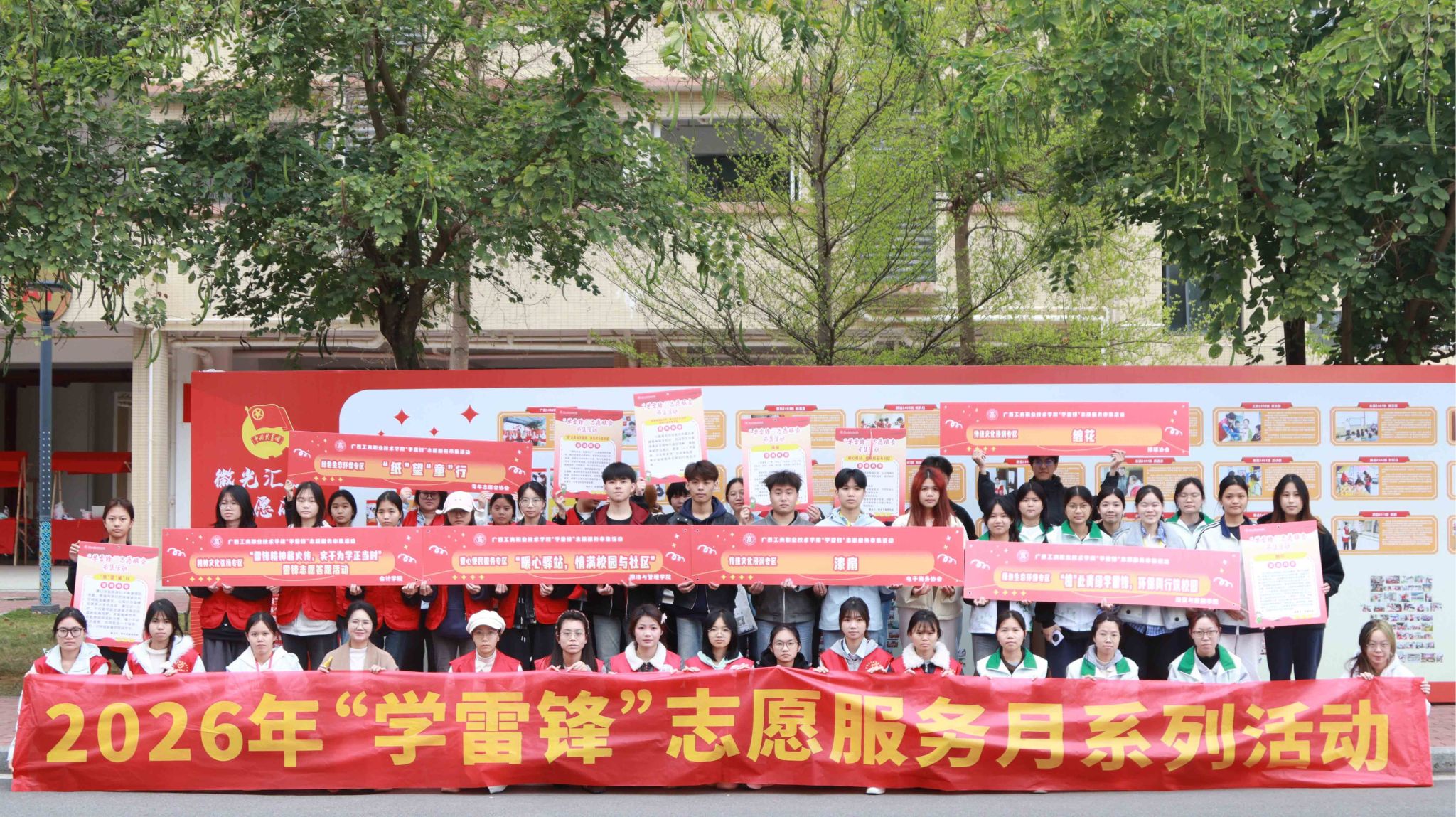 • 為傳承弘揚雷鋒精神,踐行志愿服務(wù)理念,在第63個“學(xué)雷鋒紀(jì)念日”到來之際,3月10日,2026年“學(xué)雷鋒”志愿服務(wù)月系列活動之“志愿服務(wù)市集”在我校武鳴、鵬飛、中堯三個校區(qū)同步火熱開展。本次活動以“青春志愿...