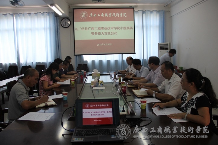 • 2016年9月20日下午,九三學社廣西工商職業(yè)技術(shù)學院小組換屆暨升格為支社會議在我院召開。九三學社廣西區(qū)委組織部部長賴定凡、學院黨委副書記、紀委書記蒙啟成、統(tǒng)戰(zhàn)部部長蔣百平、統(tǒng)戰(zhàn)部副部長王桂玲和學院各民主...