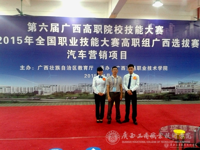 • 2015年4月27、28日,2015年廣西高職院校技能大賽暨全國職業(yè)技能大賽高職組汽車營銷項(xiàng)目選拔賽在廣西交通職業(yè)技術(shù)學(xué)院舉行。我院經(jīng)管系選派營策1331班的梁智和營策1332班的王婷兩名同學(xué)組隊(duì)參賽,指導(dǎo)老師為蔣文全...
