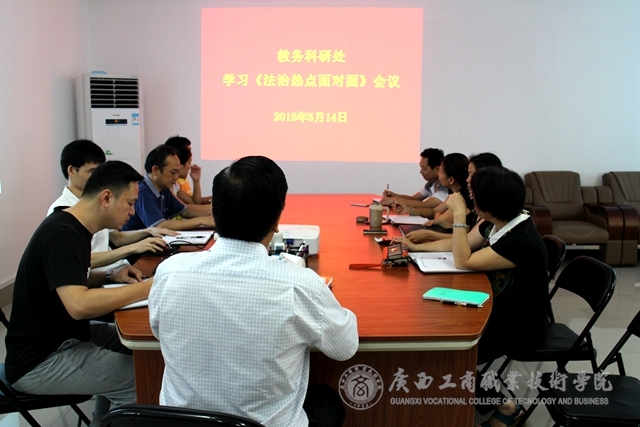 • 2015年5月18日下午,黨委學(xué)生工作部舉行了《法制熱點(diǎn)面對面》學(xué)習(xí)活動(dòng),黨委學(xué)生工作部全體成員參加了學(xué)習(xí)活動(dòng)。付光部長對“全面依法治國”的內(nèi)容作了深入分析。 學(xué)習(xí)會上,...