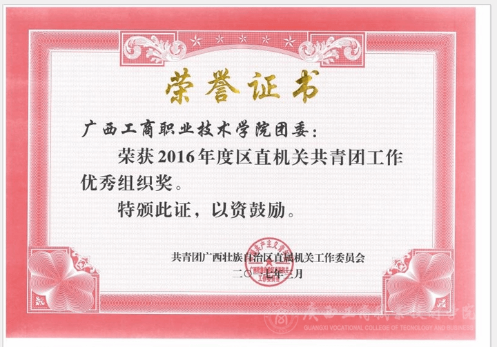 • 2017年3月1日,區(qū)直機關(guān)團工委公布了2016年度區(qū)直機關(guān)共青團工作“最佳組織獎”和“優(yōu)秀組織獎”名單。其中我院團委喜獲“2016年度區(qū)直機關(guān)共青團工作優(yōu)秀組織獎”榮譽稱號。 ...