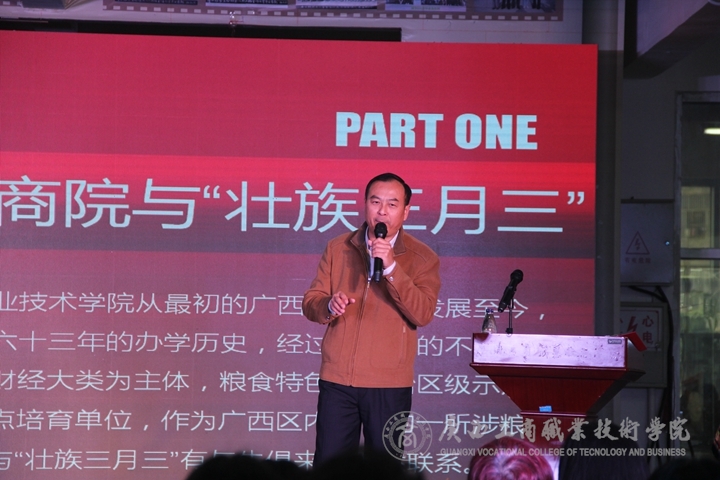 • 2017年3月28日,我院在學(xué)院校本部文體館一樓舉辦廣商院“壯族三月三”民族文化教育活動(dòng)日,學(xué)院黨委副書(shū)記蒙啟成出席活動(dòng),他不僅現(xiàn)場(chǎng)作精彩有趣的“三月三”專(zhuān)題講座,講起了故事,還唱起了山歌。學(xué)院各部門(mén)老師...