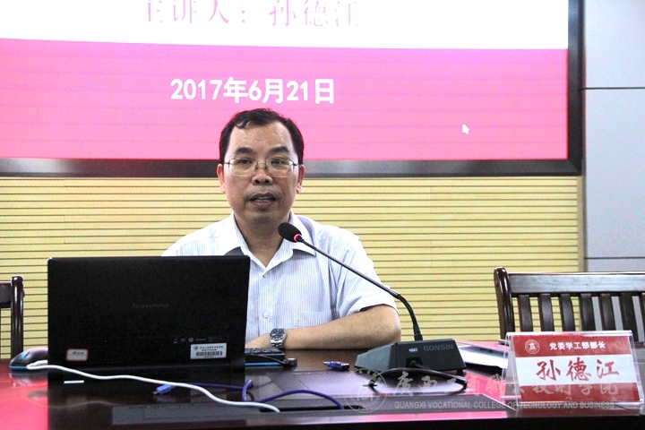 • ? ? ? ? 2017年6月21日下午,我院在學(xué)院會議室開展了實(shí)習(xí)生黨員專題黨課活動。本次黨課由學(xué)院黨委學(xué)工部部長孫德江主講,由經(jīng)管系黨總支書記莫春華主持。各系黨支部代表、在南寧實(shí)習(xí)的學(xué)生黨員、學(xué)院15、16級的入...