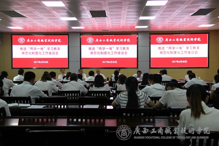 • 6月30日上午,我院在校本部教學(xué)樓視頻會(huì)議室召開(kāi)推進(jìn)“兩學(xué)一做”學(xué)習(xí)教育常態(tài)化制度化工作座談會(huì)。學(xué)院黨委書(shū)記覃武云、院長(zhǎng)、黨委副書(shū)記陳杰、黨委副書(shū)記、紀(jì)委書(shū)記蒙啟成、副院長(zhǎng)李維、副院長(zhǎng)陳寧春出席會(huì)議,...