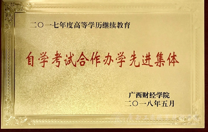 • ? ? ? ? 2018年5月24日,從廣西財經(jīng)學(xué)院2018年繼續(xù)教育年會上傳來好消息,我院被評為“2017年度自學(xué)考試合作辦學(xué)先進集體”,此次自學(xué)考試合作辦學(xué)先進集體共有三所學(xué)校榮獲此榮譽。其中我院繼續(xù)教育部副主任段小...