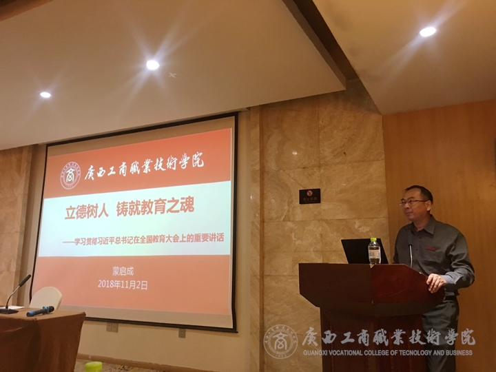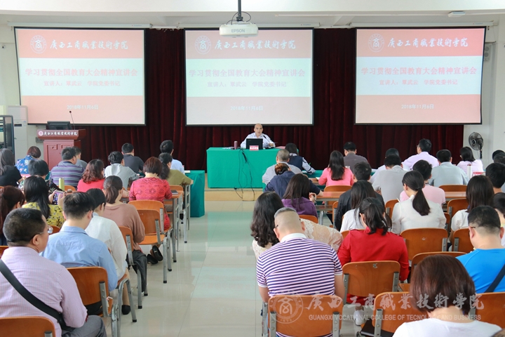 • 11月6日下午,學(xué)院于鵬飛校區(qū)報(bào)告廳召開學(xué)習(xí)貫徹全國教育大會精神宣講會。學(xué)院全體教師(含“雙肩挑”教師)、各系學(xué)生代表參加宣講會。本次宣講會由學(xué)院黨委書記覃武云主講。覃武云書記從全國教育大會的背景展開...